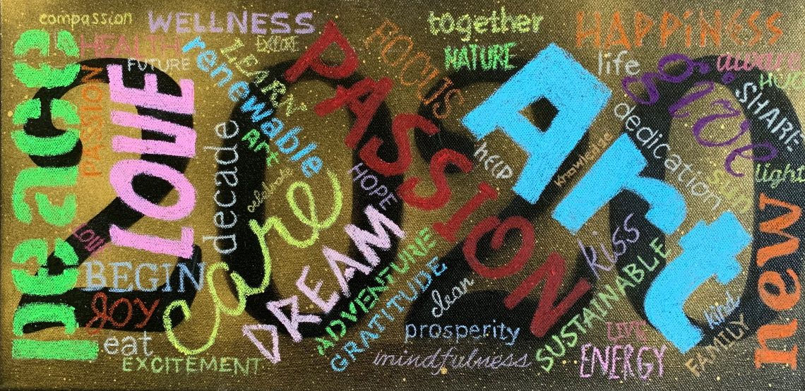The start of a new decade is a very inspiring time. Happy New Year and Happy New Decade! This canvas consists of acrylic paint, oil pastels and aerosol and was an experimental piece to kick off the New Year. I enjoyed making it and tried to convey my enthusiasm and hopes for the new decade in this piece. At this specific time positivity was at an all time high, however little did we know a few short months into the future a world wide pandemic was about to break out and make a huge impact on all of our lives.
