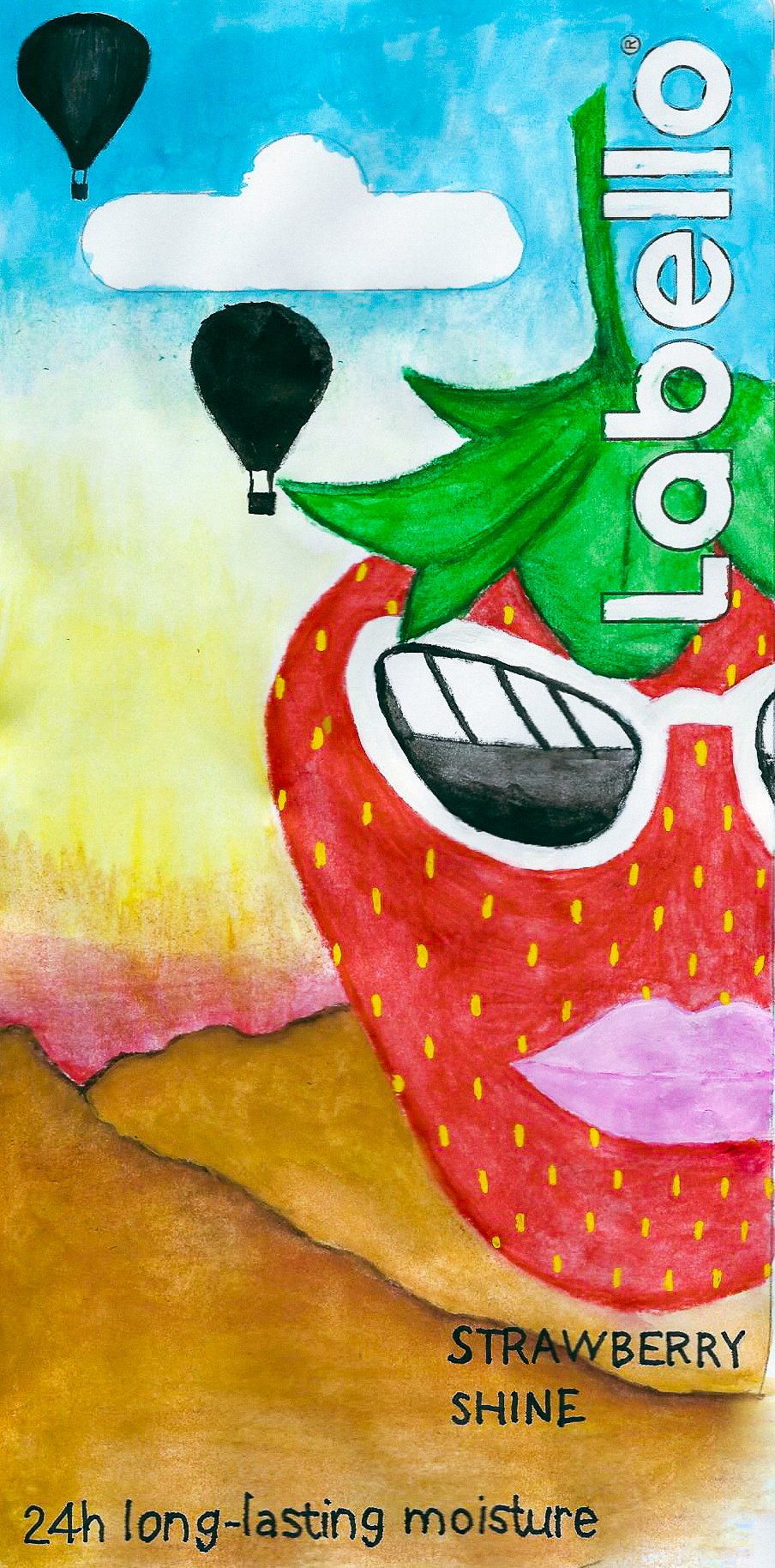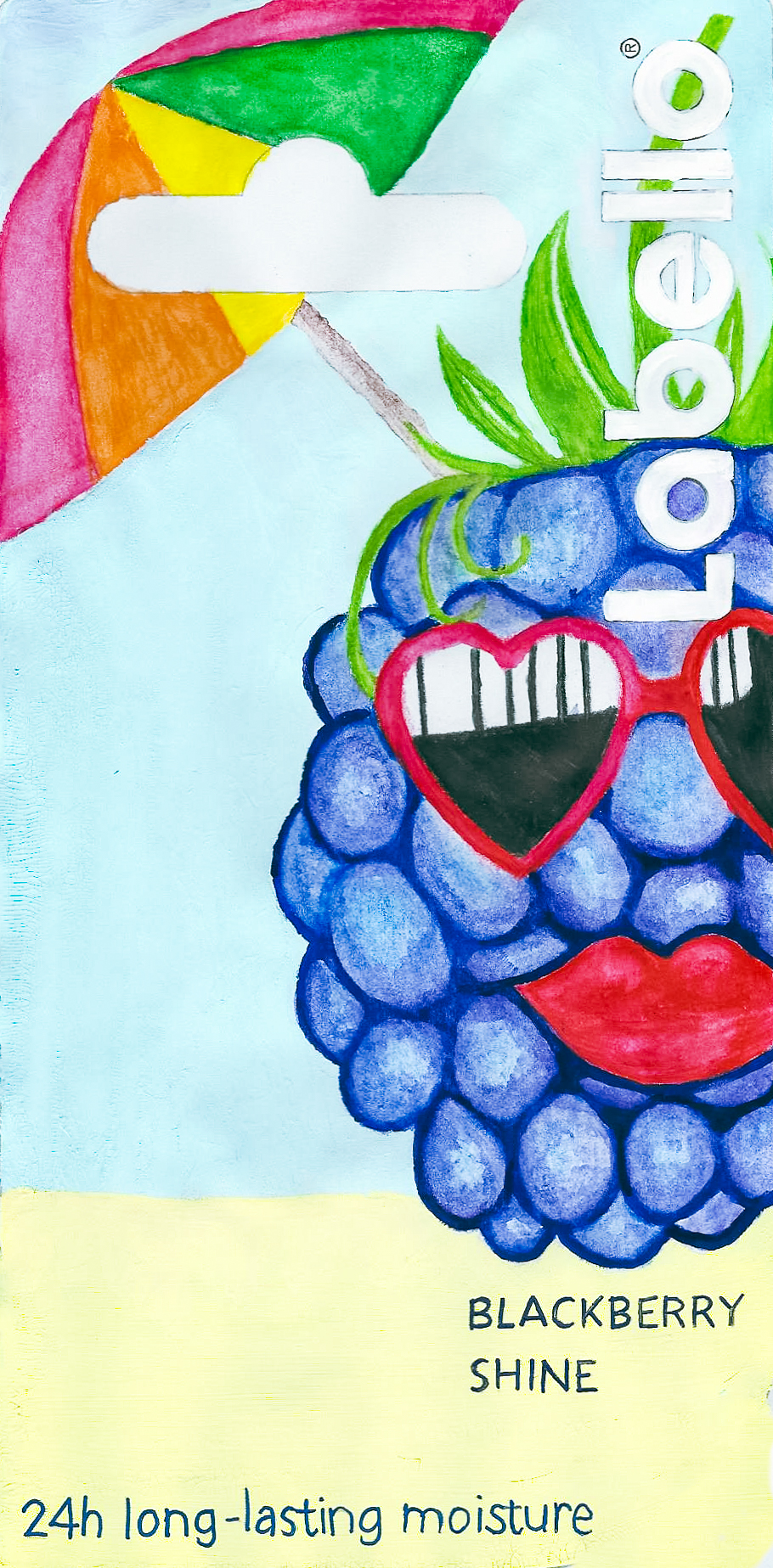 Labello the lip gloss manufacturing company ran a competition. It was to design the packaging for two of their products; Strawberry Shine and Blackberry Shine. Unfortunately I am not a graphic designer so my entire entry was two actual watercolor paintings. The template was provided so my paintings were on plain paper that has the template printed which consisted of the the cut out and the “Labello” font both of which I left white. The concept was Miss Blackberry Shine, keeping it cool and fresh, ready for a hot day chilling on the beach. Then comes Miss Strawberry Shine, ready for a night out on the town, enjoying the sunset.…