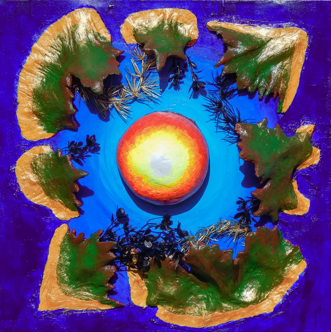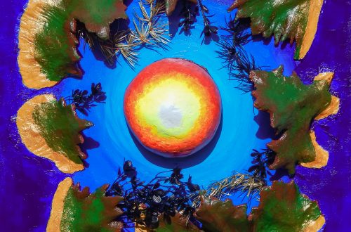 This is a conceptual and experimental piece I created. It is a mixed media piece on canvas, with acrylic paint, papier-mache, sulphite board, glue, plastic and aerosol paint. The world and society have made all the necessary changes, humans have become the true custodians of earth. Society has begun to function on a higher level and the triple bottom line is the truest measure of success. Environments and habitats are growing and thriving. Food shortages are a thing of the past, animals that were nearing extinction have been protected and programmes have been put in place to save their species. Humans have managed to stabilize the climate and reverse some…